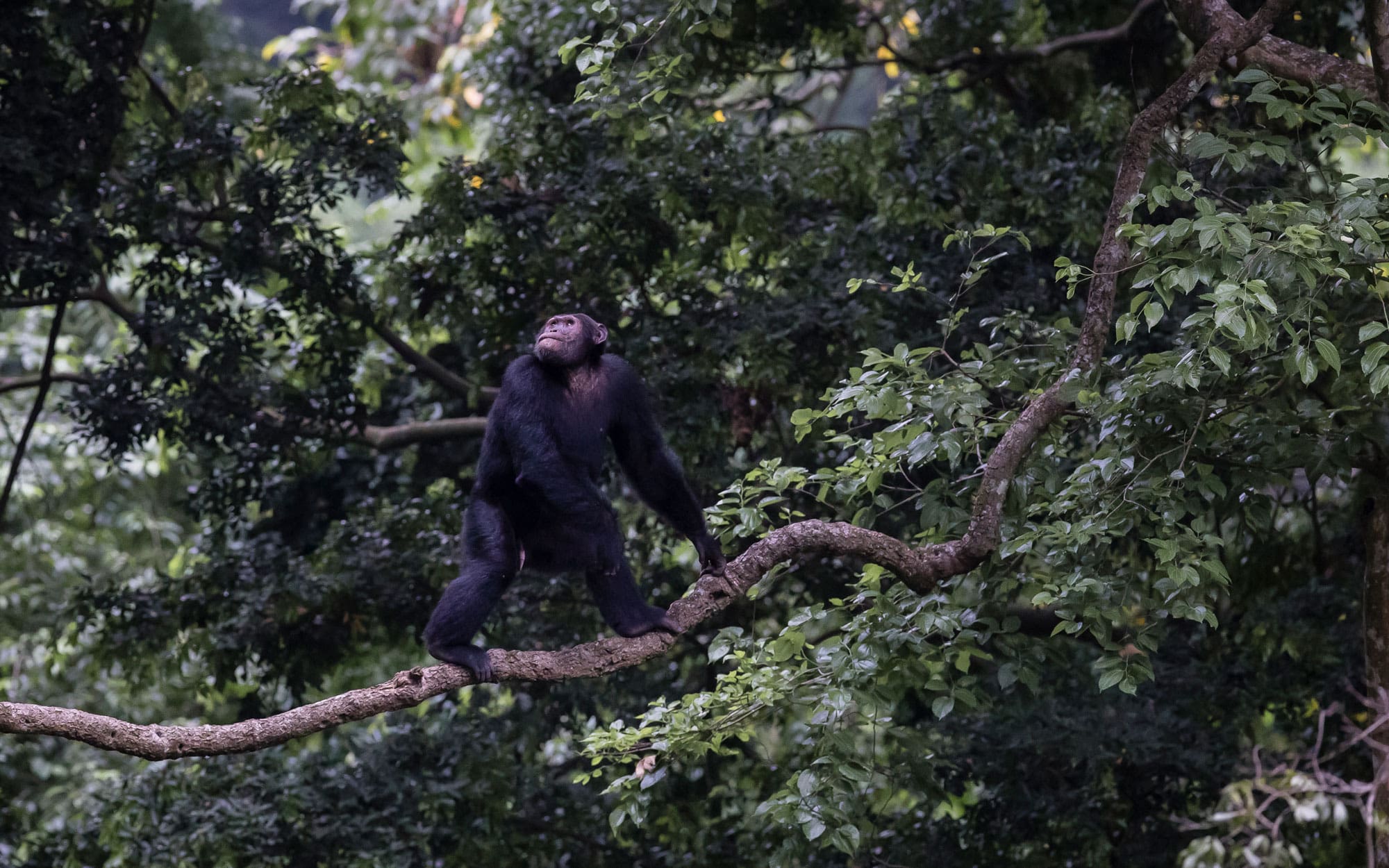 Tracking chimpanzees in their natural habitat, as they swing from the branches in the canopy high above the forest floor is nothing short of exhilarating. The chimps effortlessly cross and scamper through the trees above the gorge, and visitors on the other hand must cross the river using natural bridges in order to keep up with the chimps. So although the walk usually lasts only 2–3 hours, descending the steep gorge and crossing the log bridges over the river requires some agility and fitness.