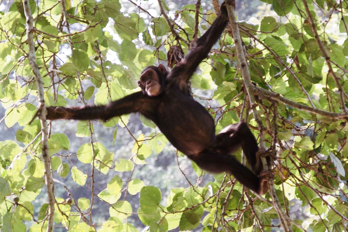 Tracking chimpanzees in their natural habitat, as they swing from the branches in the canopy high above the forest floor is nothing short of exhilarating. The chimps effortlessly cross and scamper through the trees above the gorge, and visitors on the other hand must cross the river using natural bridges in order to keep up with the chimps. So although the walk usually lasts only 2–3 hours, descending the steep gorge and crossing the log bridges over the river requires some agility and fitness.