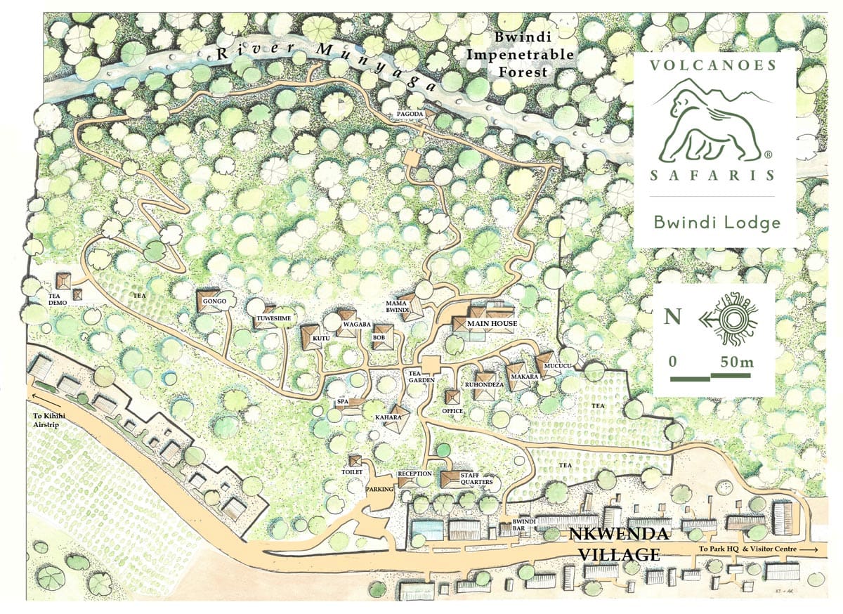 Ten elegant hand built guest bandas facing the dramatic Bwindi Forest (Two deluxe and eight standard rooms).